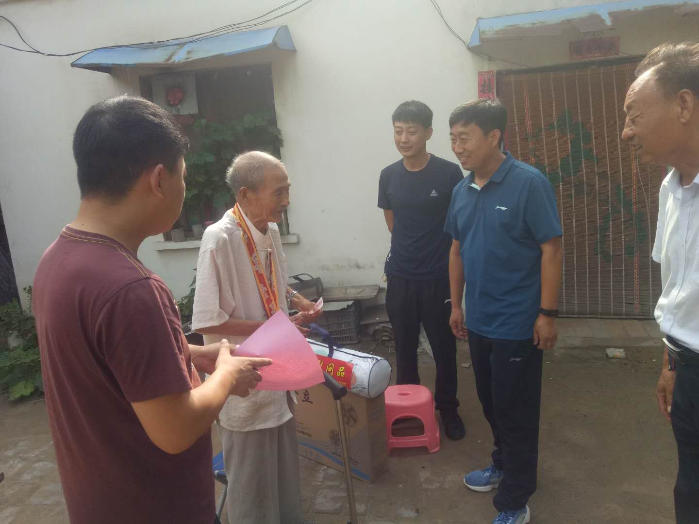 夏日炎炎,瓦岗寨乡党委书记王立铭一行深入各村亲切慰问老复员军人,为他们送去慰问金、慰问品,送上夏日的清凉。