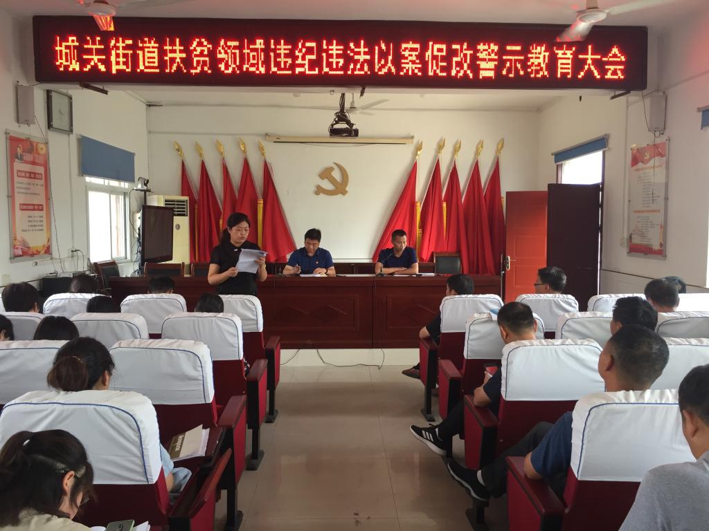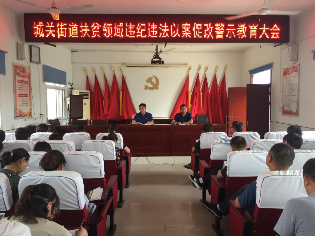 7月3日,城关街道召开扶贫领域违纪违法以案促改警示教育大会,全体干部职工参加会议。