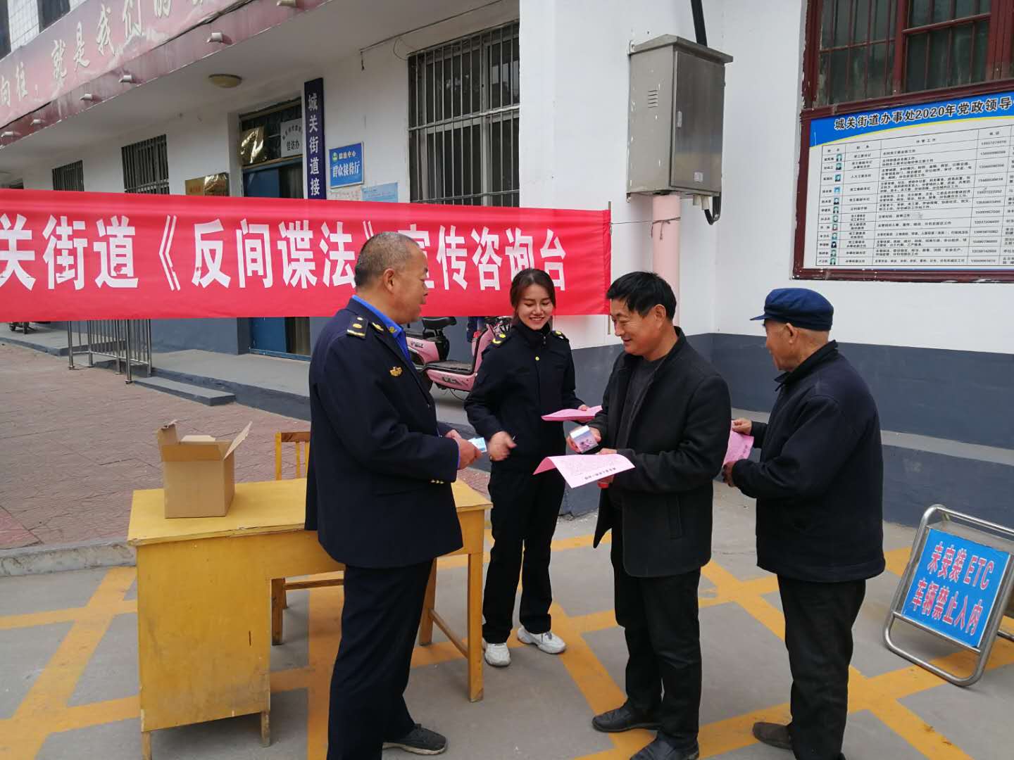 为进一步提高全社会反奸防谍意识,在《反间谍法》颁布实施六周年之际,10月28日上午,城关街道积极开展《反间谍法》宣传教育活动。