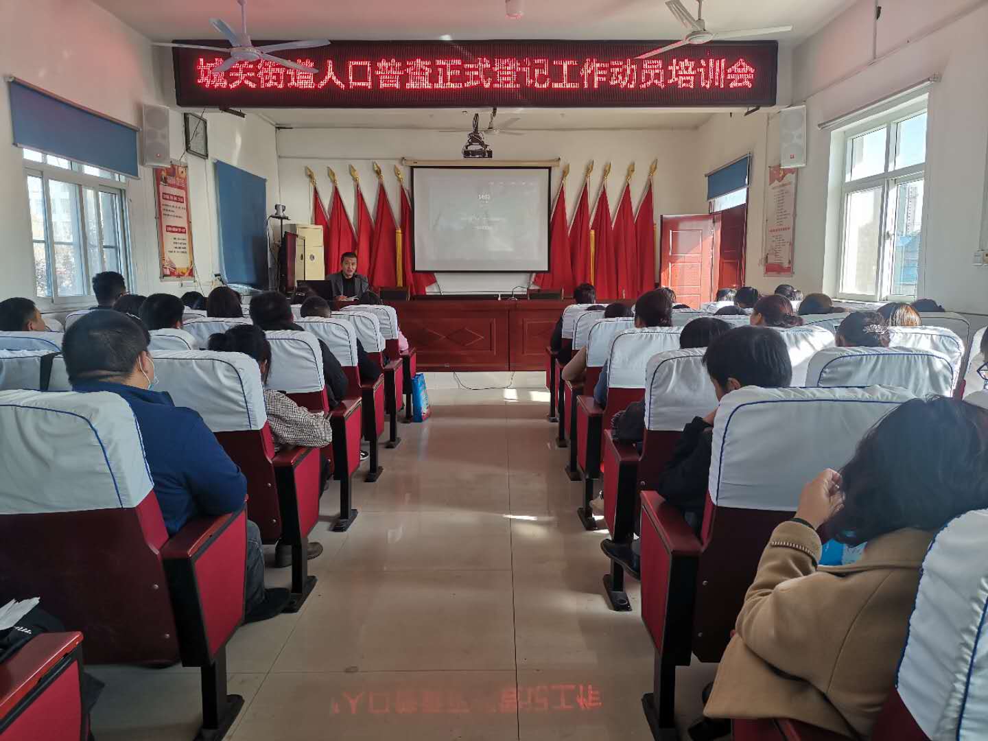 11月2日下午,城关街道在二楼大会议室召开第七次全国人口普查正式登记短表培训会,各村(社区)普查指导员和普查员参加培训。