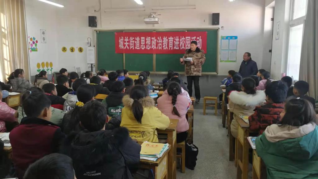 城关街道办事处副主任韩祥森在城关街道珠照中心小学讲思政教育课