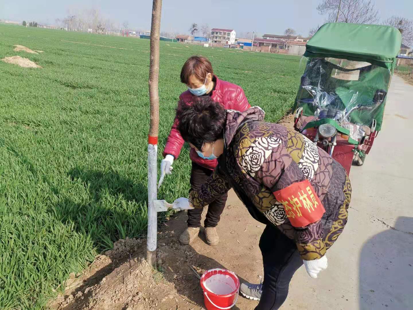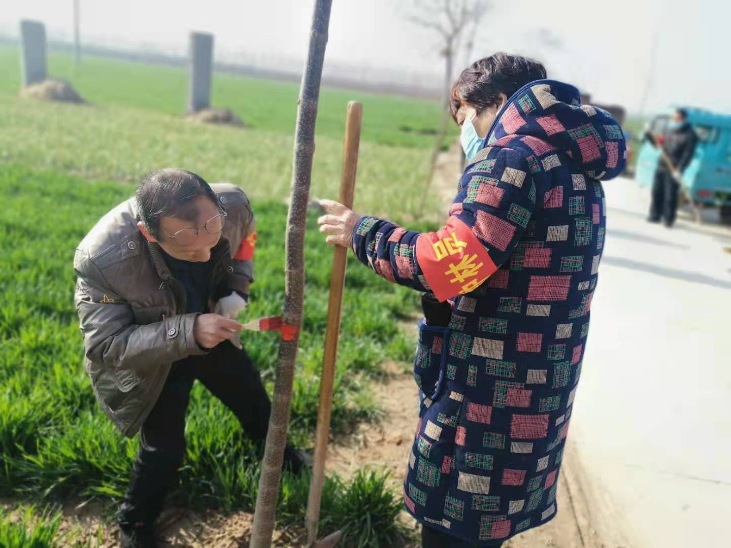 活动现场,瓦岗寨乡护林员在农办种植技术人员的指导下,挖坑整地、栽植树苗、培土压实,为树木涂白防病虫,各道工序分工明确、井然有序的进行着,呈现出一片热火朝天的劳动景象。