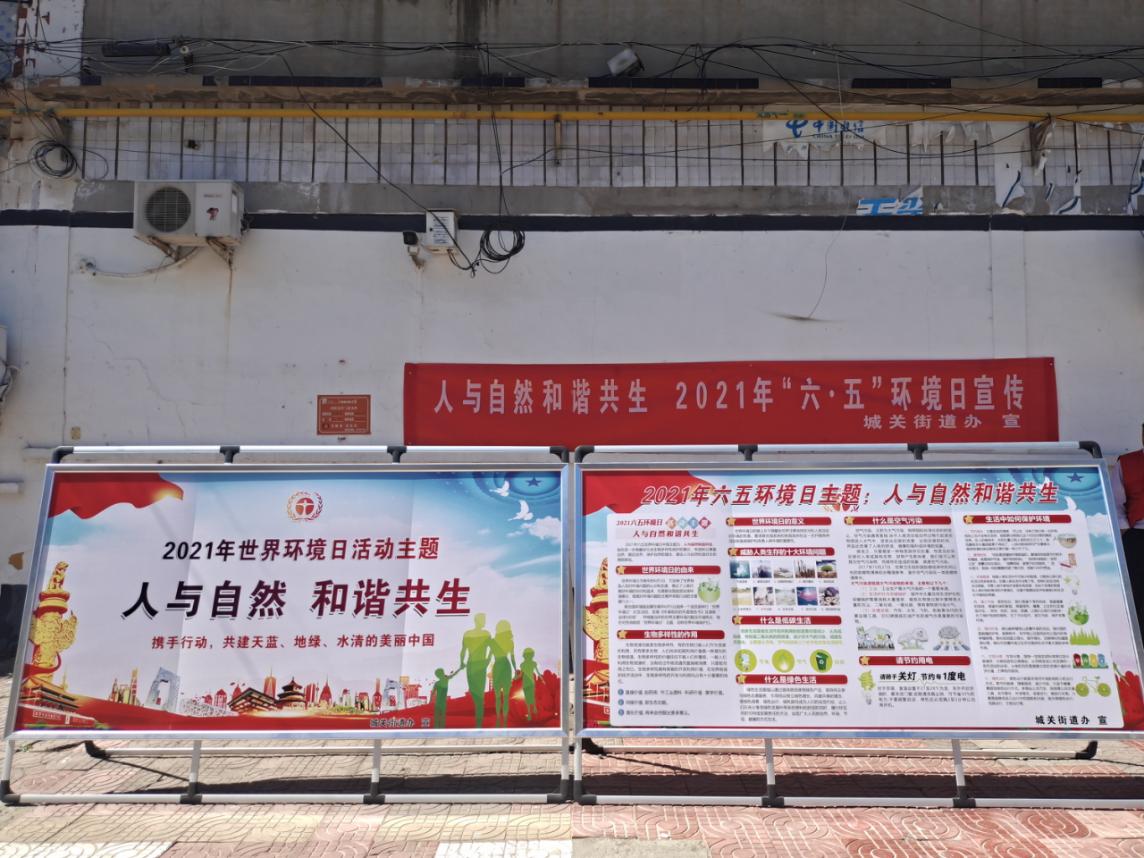 6月5日是第50个世界环境日,为进一步提高群众保护环境意识,城关街道积极开展“人与自然和谐共生”主题宣传活动。