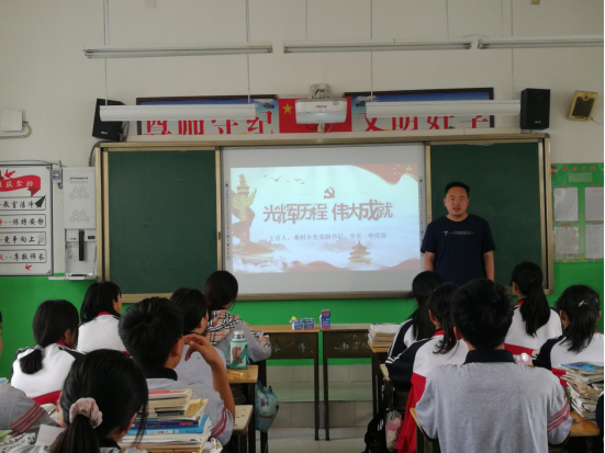 政府乡长申亮亮到乡第二初级中学讲授《光辉历程,伟大成就》