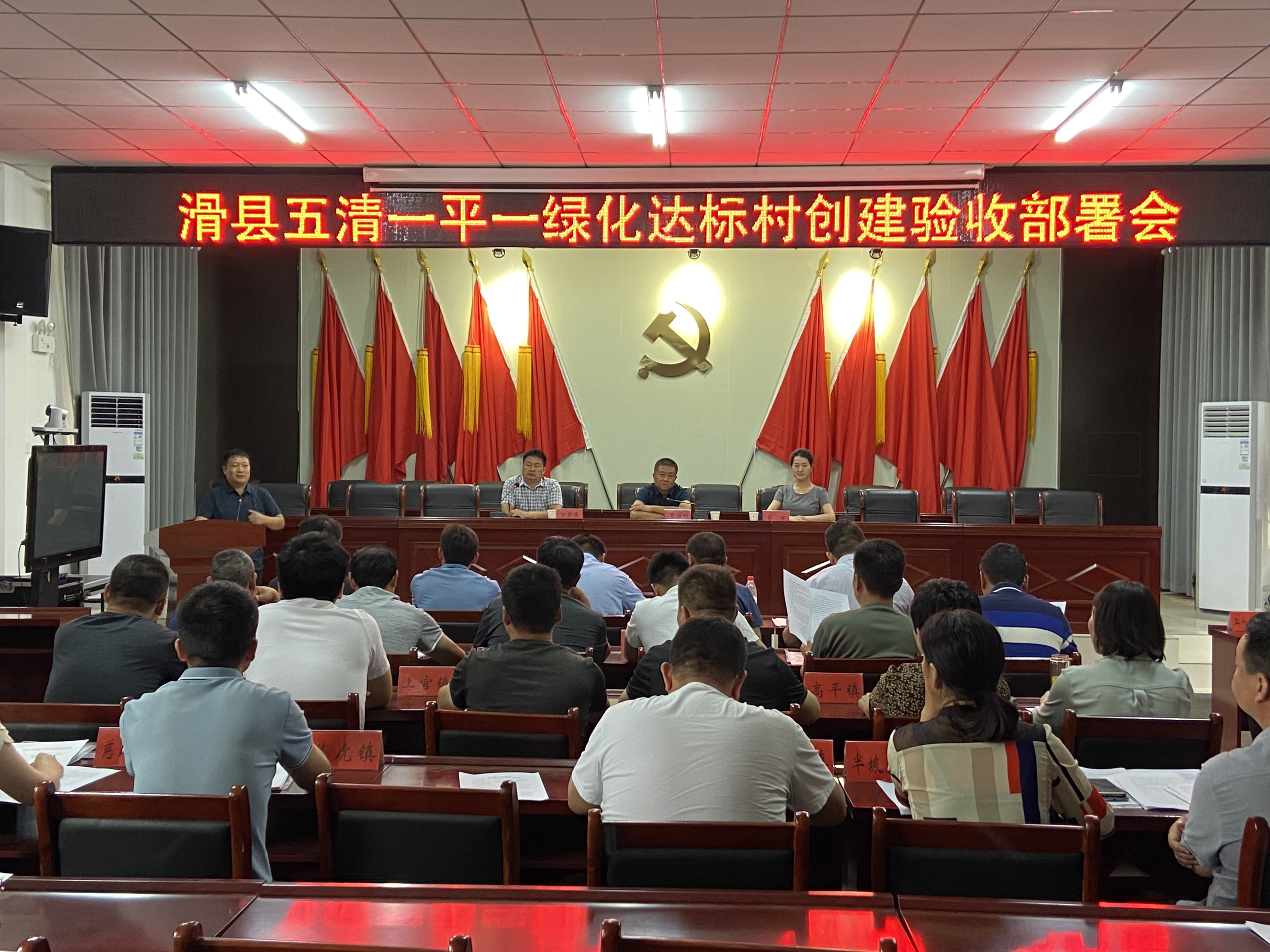 随后,在瓦岗寨乡政府大会议室召开了滑县五清一平一绿化达标村创建验收部署会,对全县的五清一平一绿化达标村创建验收工作进行了全面安排部署。会上,乡人大主席陈栋华就瓦岗寨乡五清一平一绿化工作开展情况和长效机制建立情况进行了交流发言。县农业农村局副局长肖胜利就人居环境工作面临的严峻形势、工作开展中的重难点、政策支持方面、验收的程序及长效机制的建立情况做了详细指导。