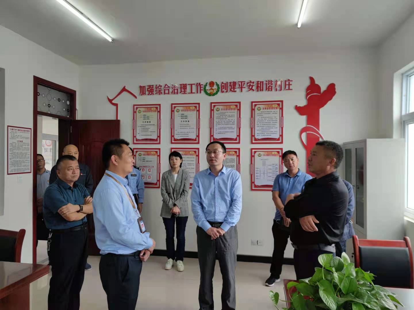 在崔郭庄村,耿昆首先汇报了白道口镇政法工作的整体情况,以及下步工作打算。随后,郭晓一行现场查看了崔郭庄村综治中心以及社会基层治理相关资料,详细询问了崔郭庄村乡村振兴的相关情况。