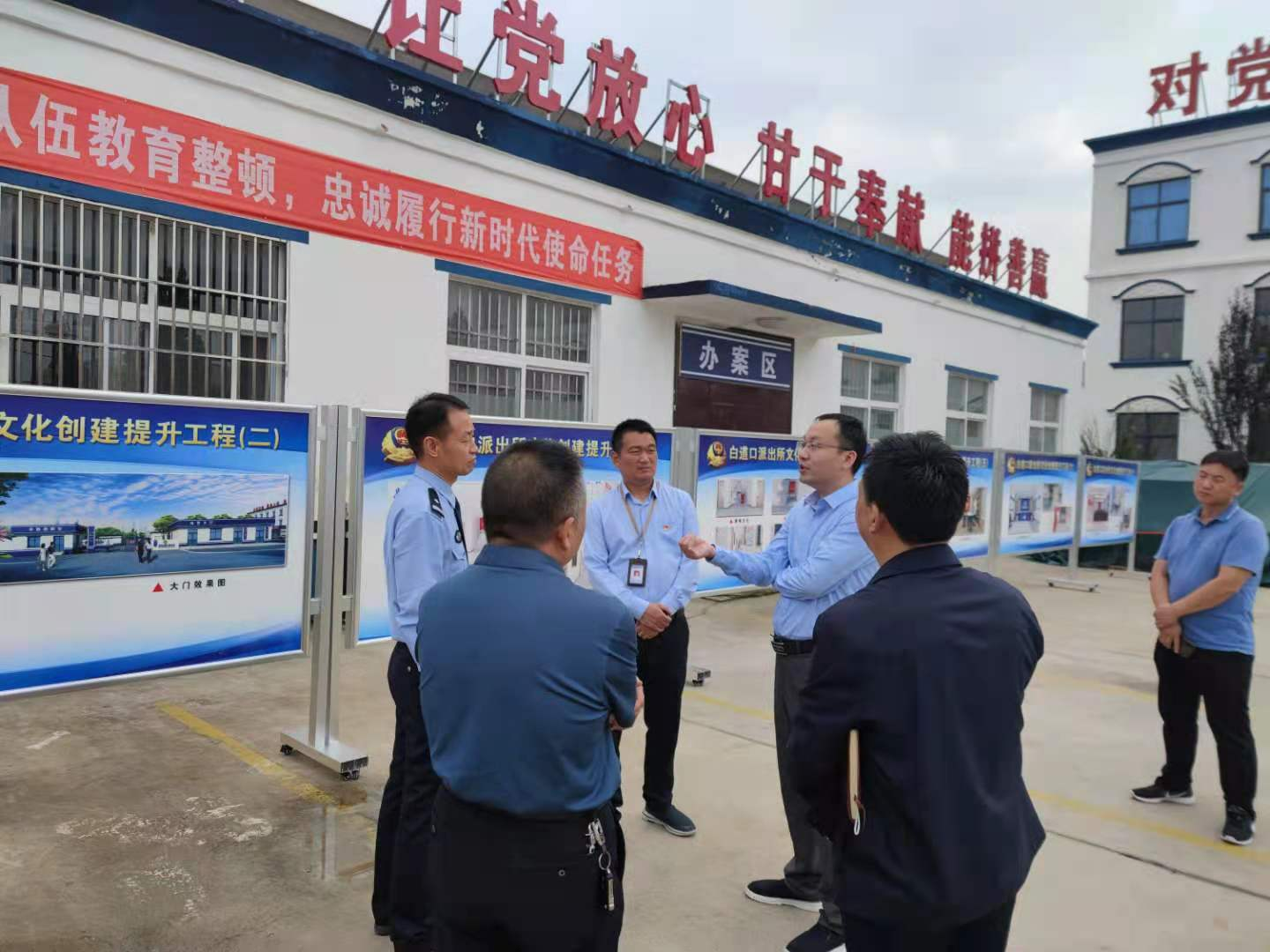 在派出所,耿树辉汇报了白道口镇派出所创建“枫桥式派出所”相关情况,郭晓详细询问了反电信诈骗及公众安全感调查和政法机关满意度调查工作开展情况,耿树辉一一进行讲解。