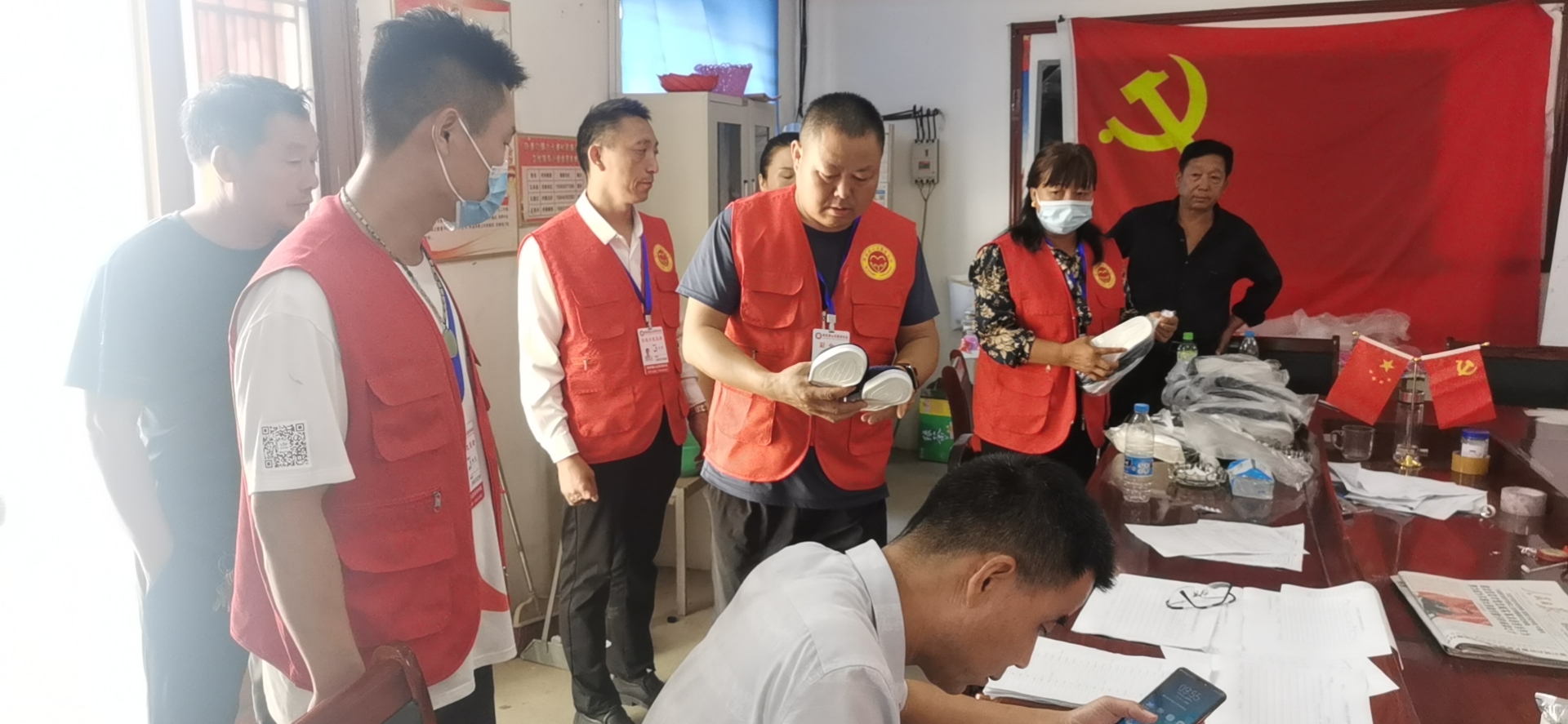 志愿者们将大大小小全新鞋子送到各村村室。