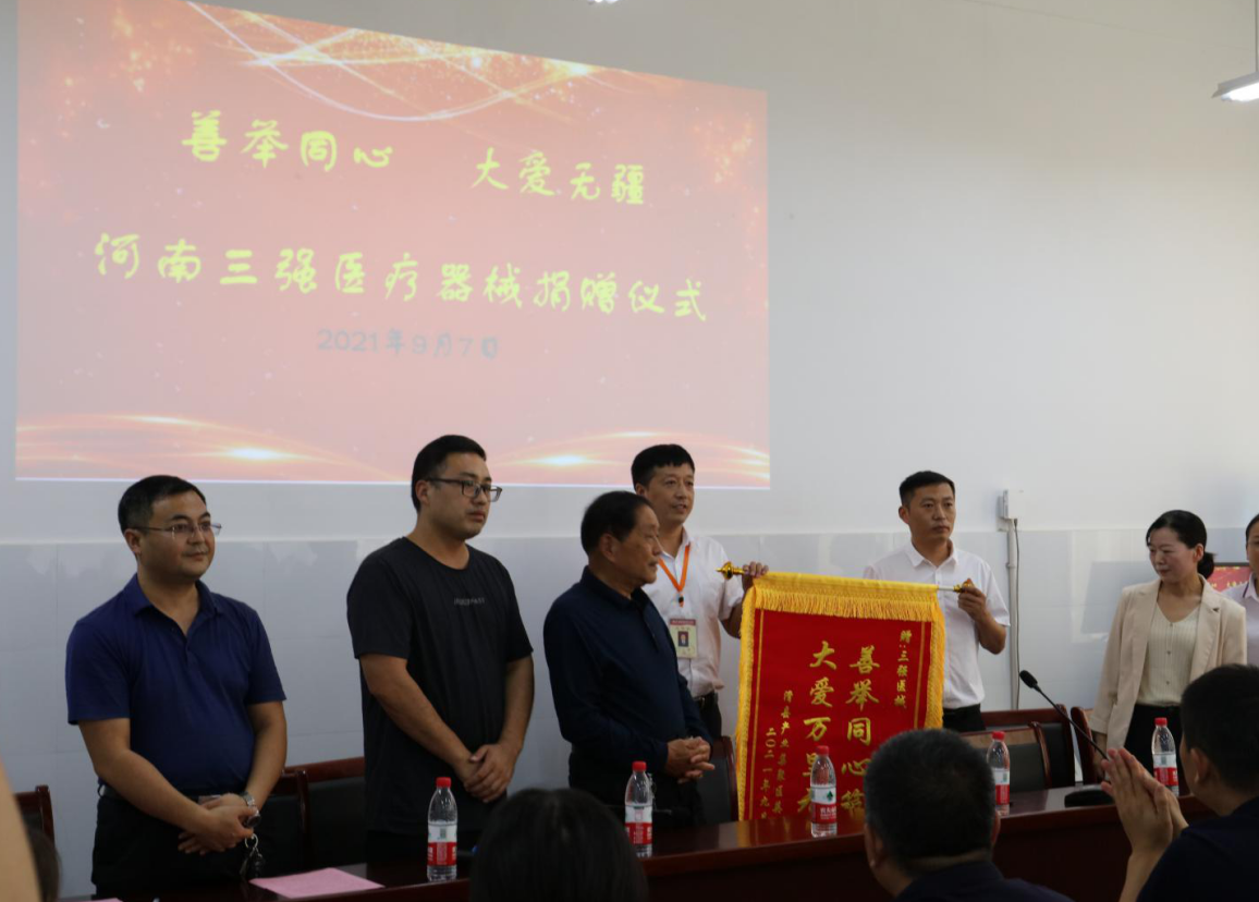 9月7日,在第37个教师节来临之际,三强医疗党支部“我为群众办实事”捐赠活动在产业集聚区英才中学举行,公司董事长韩俊强代表河南省三强医疗器械有限责任公司向英才中学捐赠资金3万元及140份礼品。锦和街道党工委副书记常飞、产业集聚区市政服务中心主任柳志英出席仪式,英才中学校领导、师生130余人参加捐赠仪式。