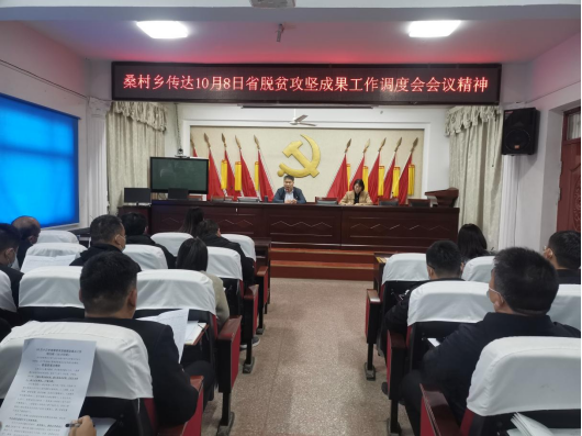 10月9日上午,桑村乡组织全体机关干部、各行政村支部书记、第一书记与脱贫攻坚指导员召开专题会议,就全省巩固脱贫成果后评估工作调度会会议精神进行学习贯彻。