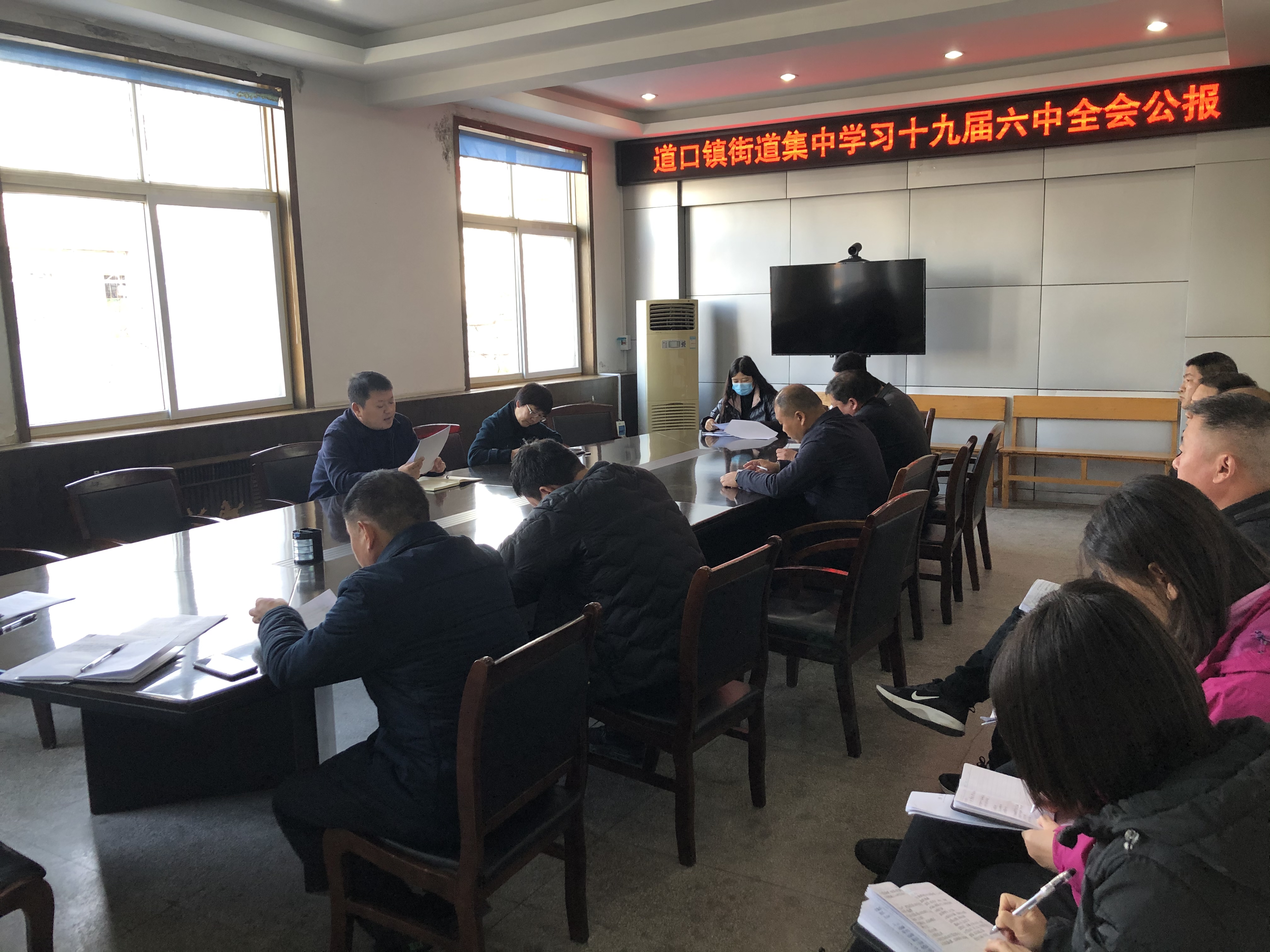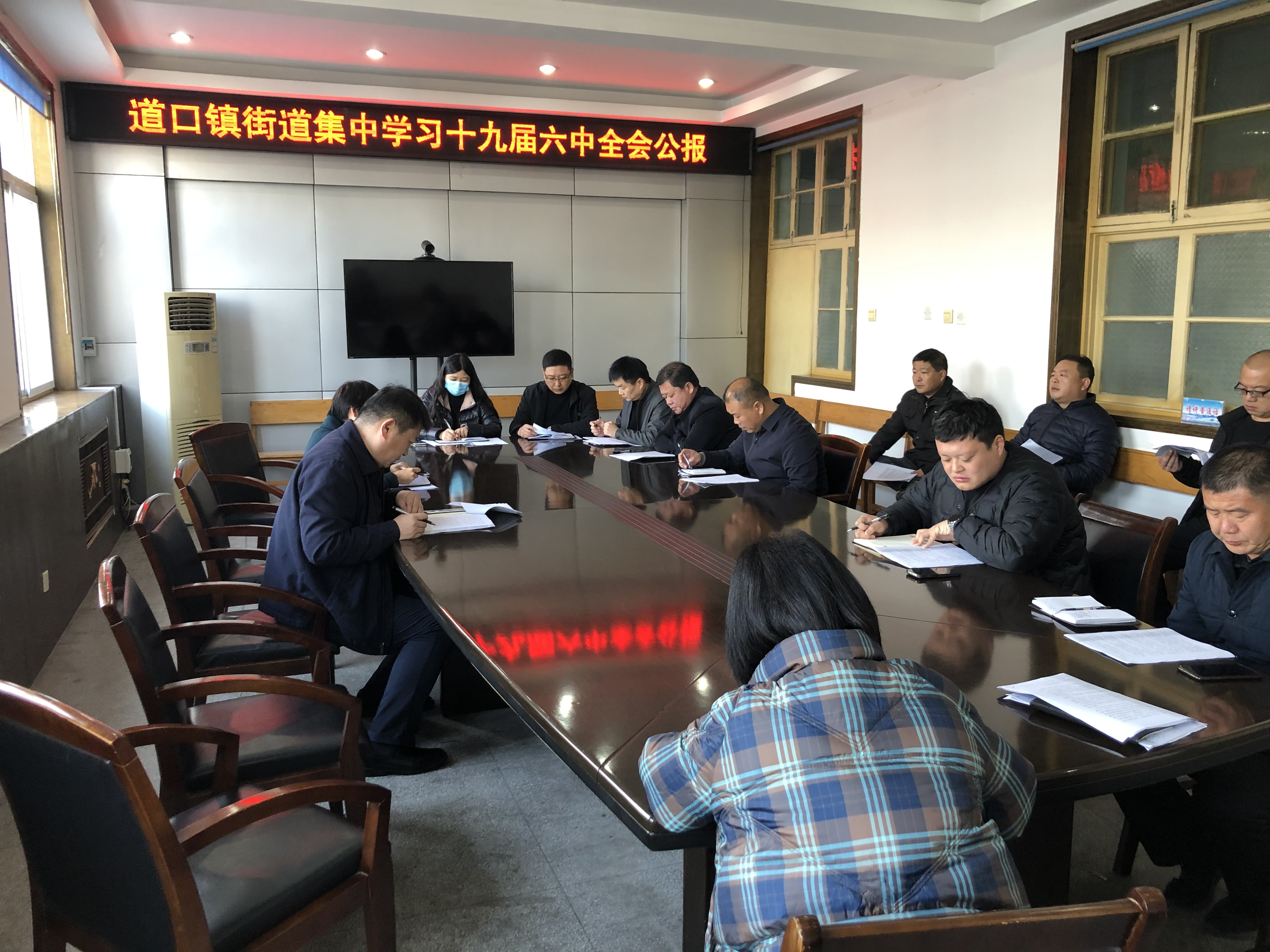 11月12日上午,道口镇街道组织领导班子及中层干部集中学习《中国共产党第十九届中央委员会第六次全体会议公报》。