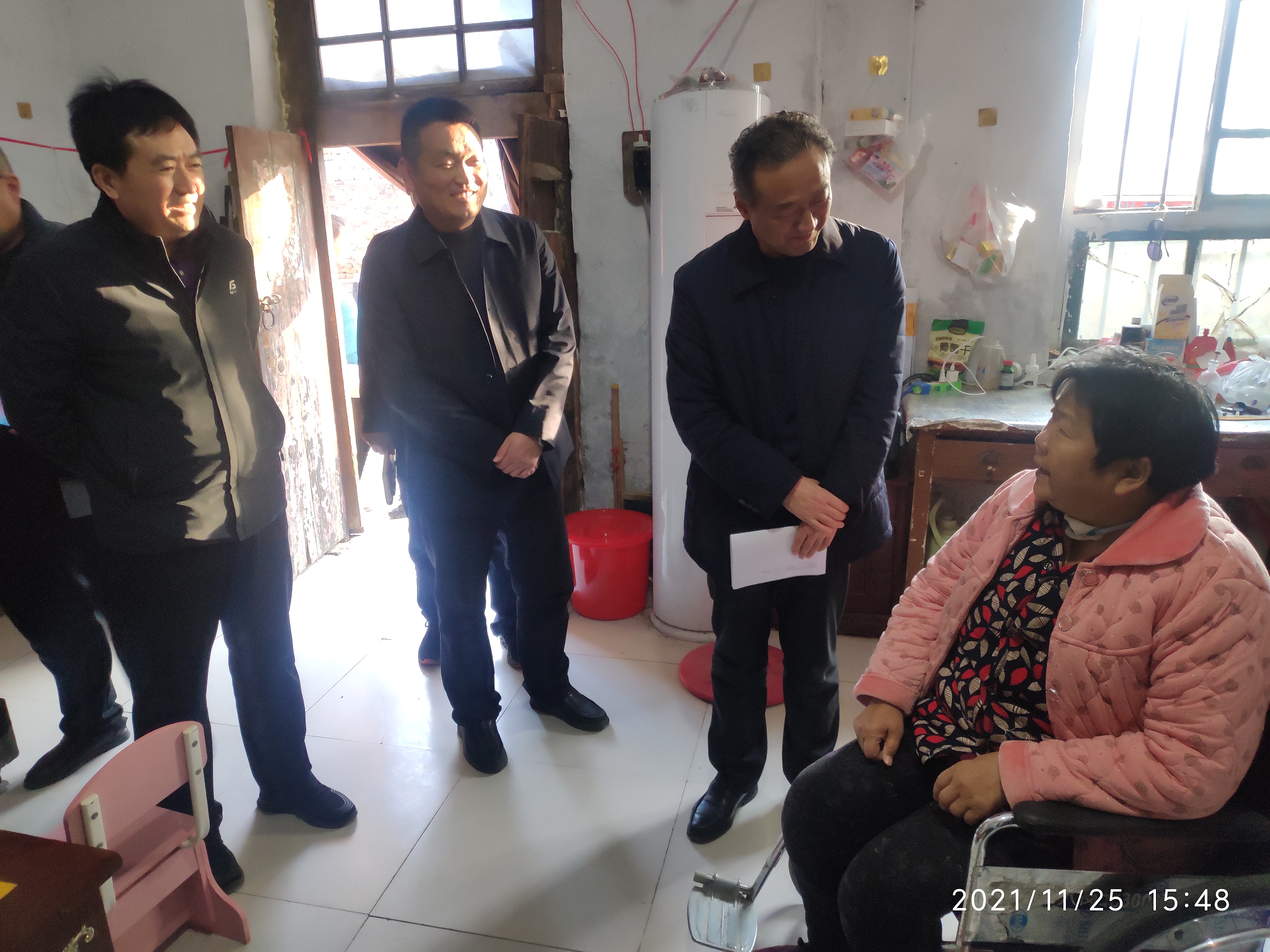 11月25日下午,县政府党组成员、产业集聚区管委会副主任宋培哲,县乡村振兴局局长韩红斌,县人保财险经理丁芳一行,到白道口镇走访享受县防贫保险救助人员,同时查看巩固脱贫攻坚成果工作进展情况。在石佛村李某家,宋培哲详细了解防贫保险赔付金是否到账,下步治疗是否仍有较大支出,对帮扶人工作是否满意等情况。同时对村两委的工作进行了肯定,表示防贫险是进一步减轻群众负担的好政策,一定要宣传到位,积极动员符合条件人员申报。