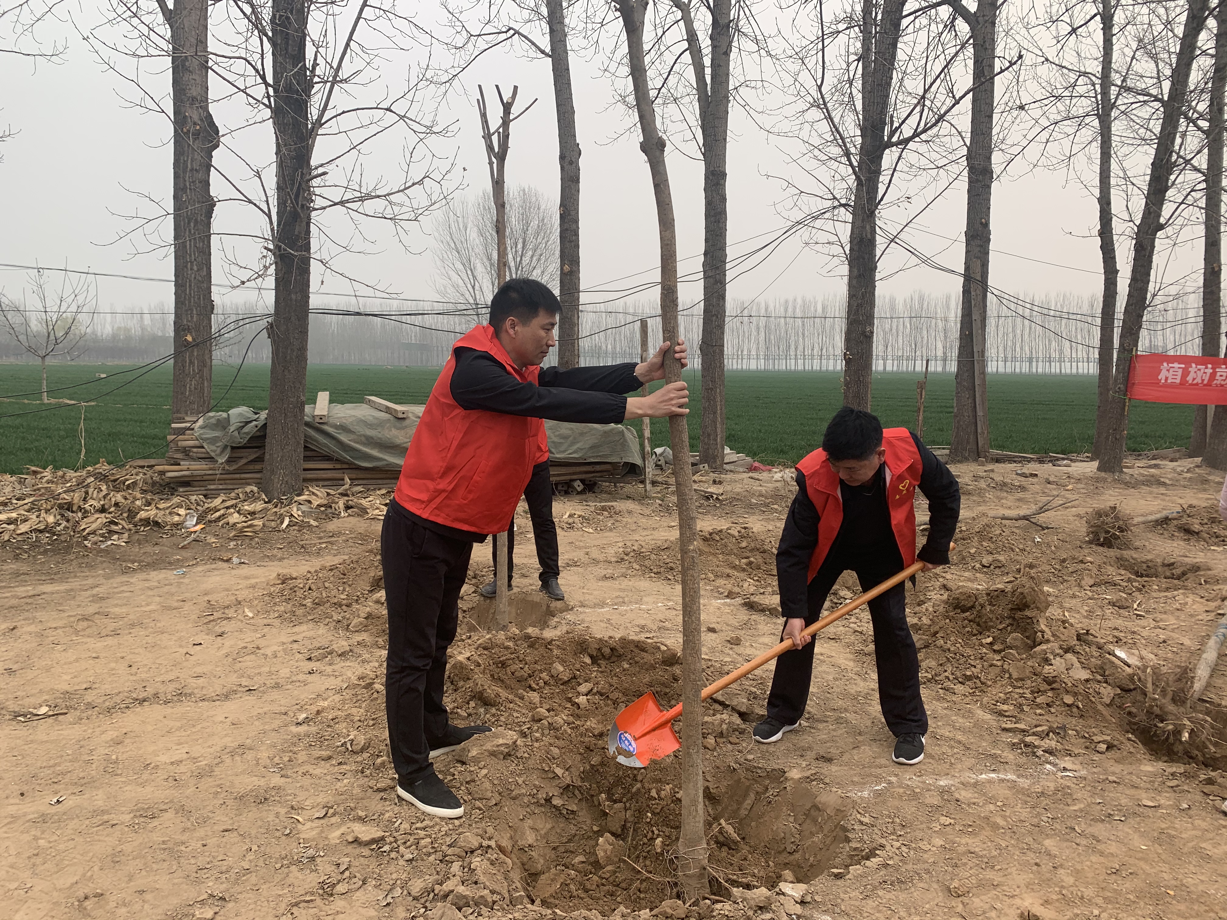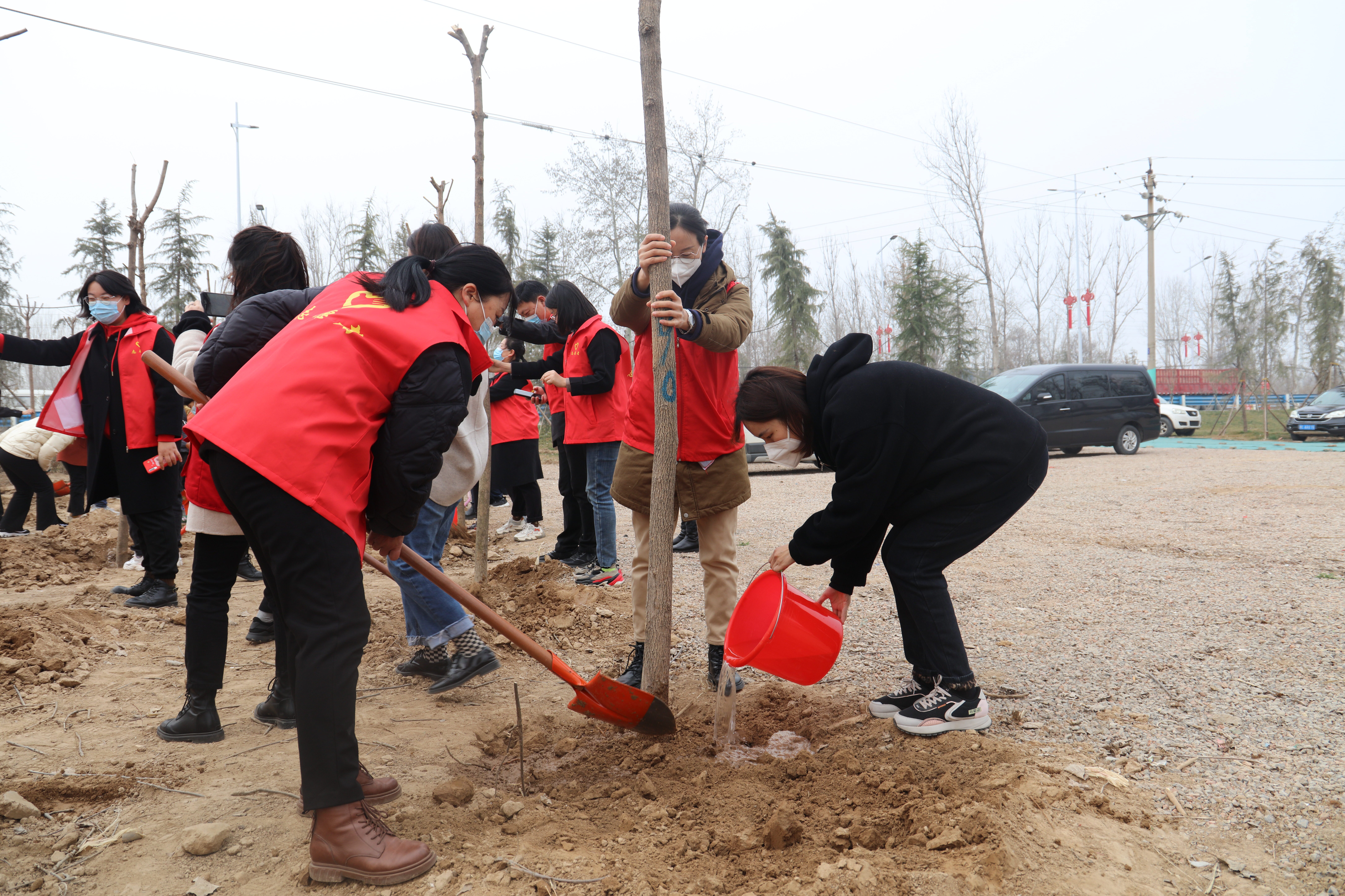 大家热情饱满,干劲十足,分工协作,一株新苗,一锹厚土,一瓢清水……各个环节衔接有序,配合默契。经过1个多小时的“奋战”,共栽种白蜡树苗150棵,植树总面积2亩。一排排树苗扎根沃土、整齐有致、迎风挺立,为美丽滑开再添新绿。