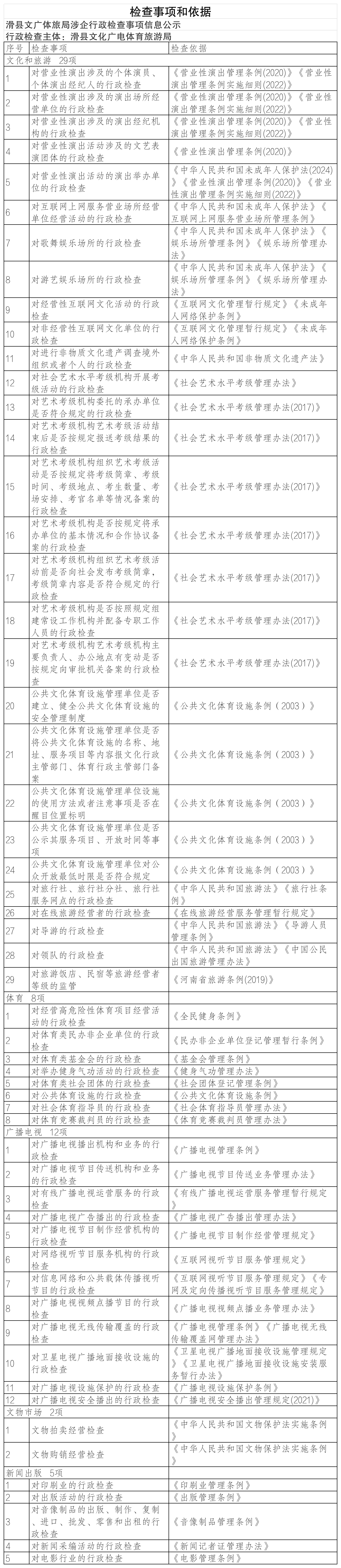 滑县文化广电体育旅游局涉企行政检查事项和依据