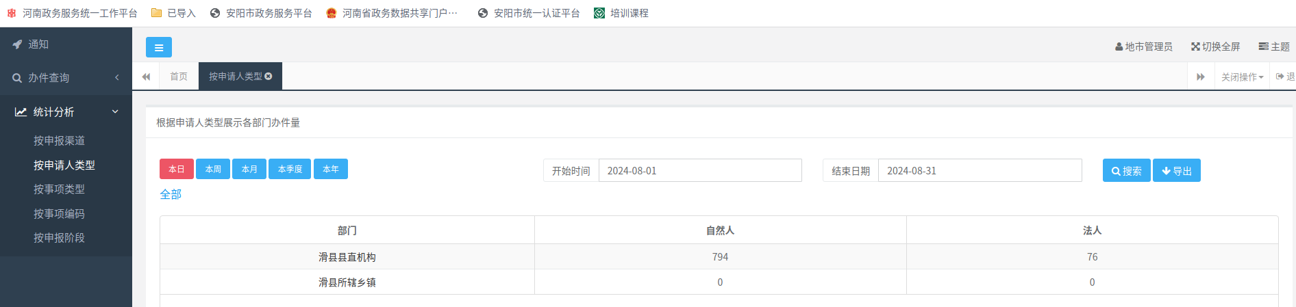 2024年8月办事统计