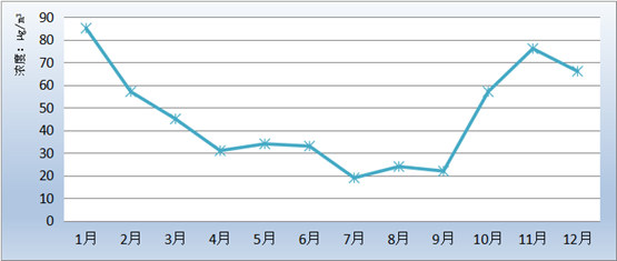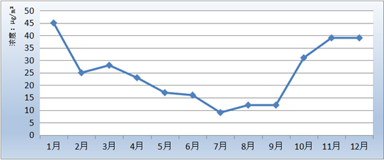 图5 PM2.5浓度月均值变化