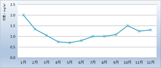 一氧化碳 | 0.3 | 2.4 | 365 | 100 | -- | -- | 1.2 | 一级 |