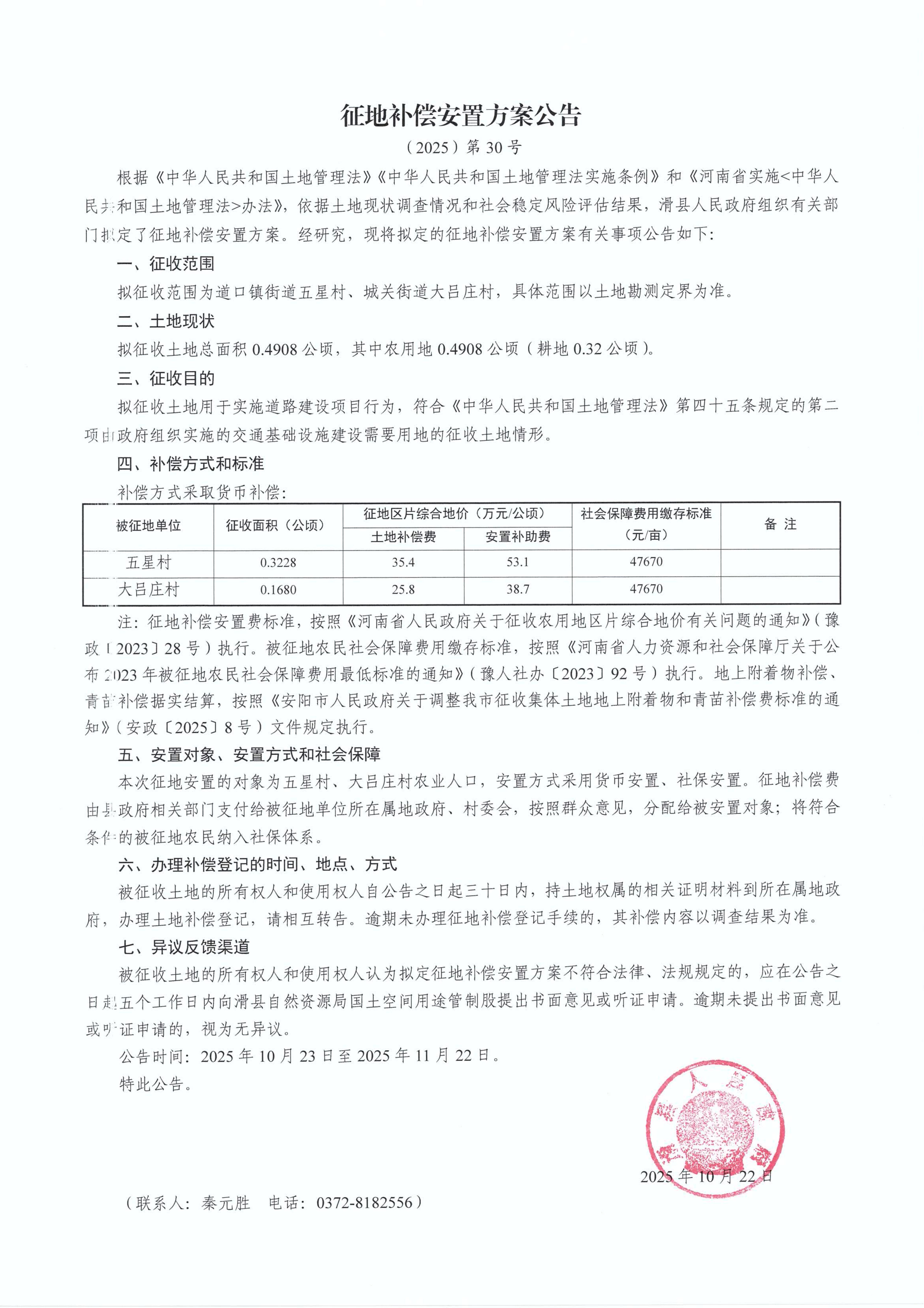 征地补偿安置方案公告(2025)第30号